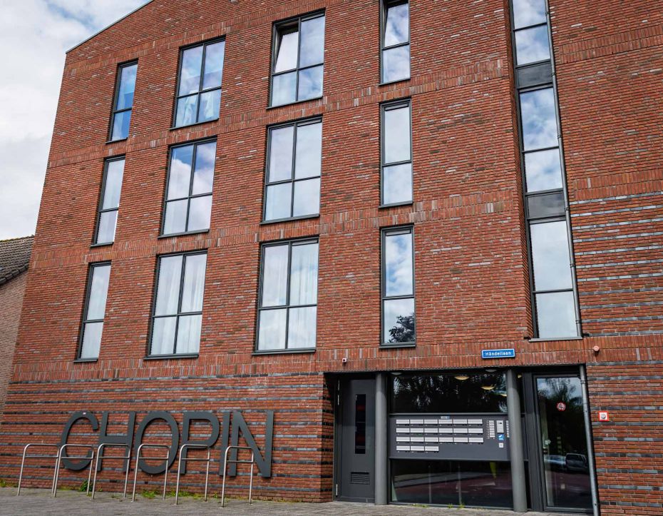 In het splinternieuwe appartementencomplex Chopin wonen 22 cliënten van Prezzent. De appartementen zijn licht en modern. Het gebouw heeft een lift. Er is een binnentuin voor de buurt.