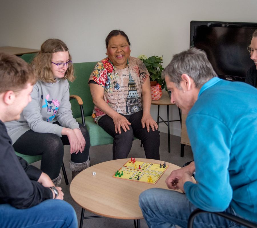 Wonen doe je zoals bij jou past. In een eigen appartement of samen met anderen in de groep – beide is mogelijk. ’s Avonds drinken we koffie, kijken tv of doen een spelletje met wie dat gezellig vindt. Er is ook een wandelgroepje dat elke avond een blokje om gaat.