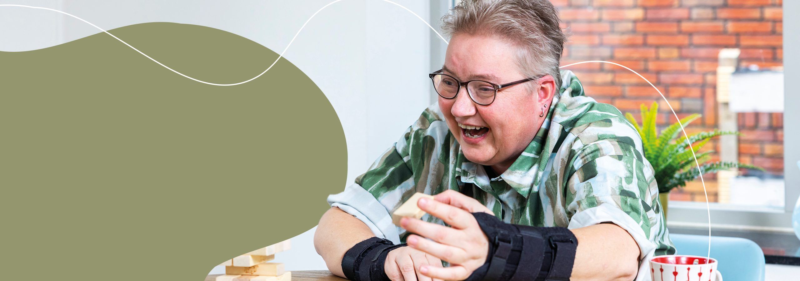 “Ik help graag met koken, tafeldekken en opruimen. En ik ben heel netjes op mijn appartement. In mijn huis staan vaak bloemen en ik heb een mooi bordje gemaakt aan dat aan de voordeur hangt met ‘Lach, leef en geniet!”